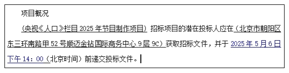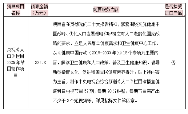 项目名称:央视《人口》栏目2025年节目制作项目