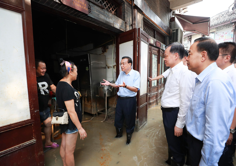 在洪水尚未完全退去的磁器口商业区,李克强一连走进多家商户,并与群众和游客交流,了解因疫情和水灾造成的商家损失,考察消费和旅游恢复情况。他说,加快服务业全面复业带动消费扩大,对于巩固经济恢复性增长态势至关重要,要在做好常态化疫情防控下,发挥国家政策扶持作用,助力企业和商户渡过难关,促进旅游等服务业正常经营,释放巨大消费潜力。