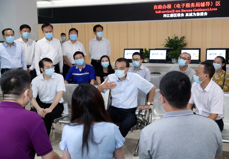 在政务大厅,重庆汇报了深化放管服改革情况。正在办事的小微企业人员告诉总理,国家减税降费力度超出预期,企业普遍受益,得以生存。李克强说,不仅要减税降费,还要进一步降门槛,更大激发市场主体活力。重庆推出网上政务服务叫“渝快办”,我们推进放管服改革就是要让群众办事愉快、有获得感。