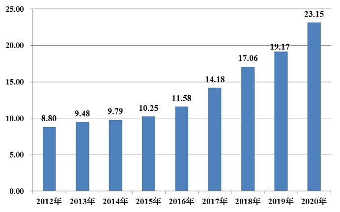2012-2020年中国居民健康素养水平变化情况